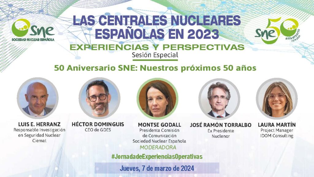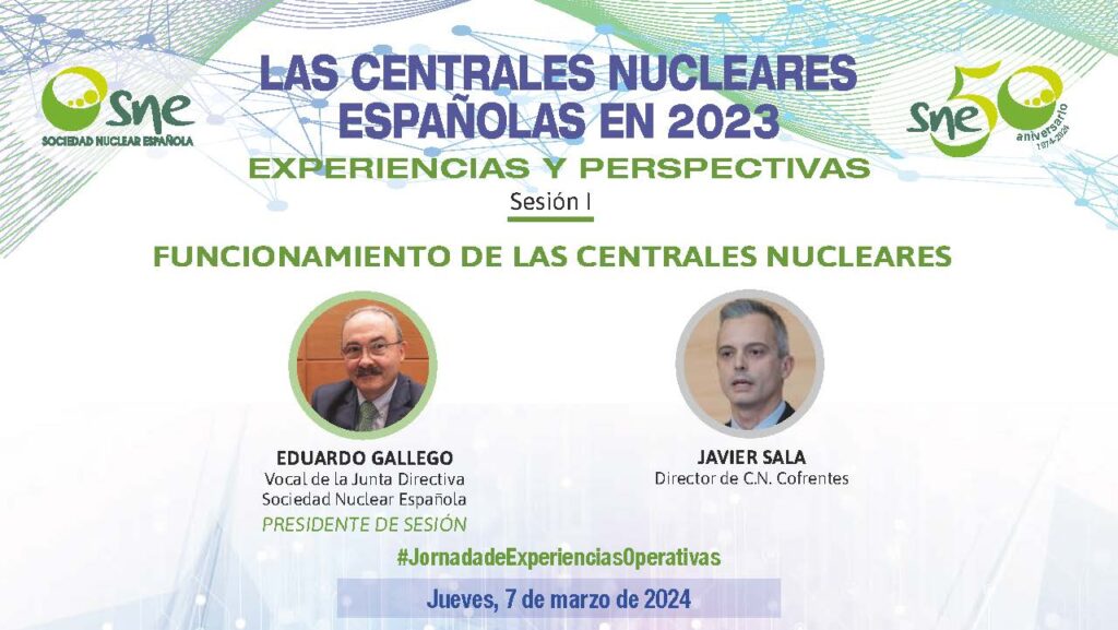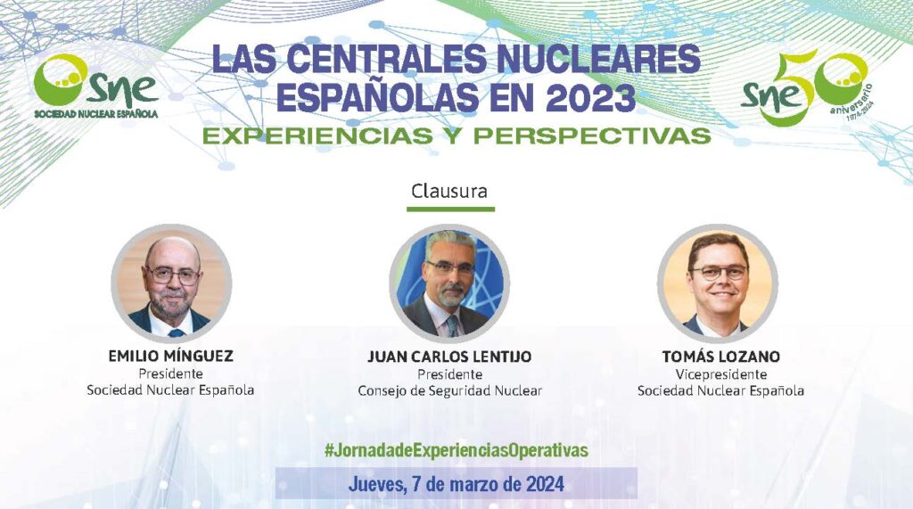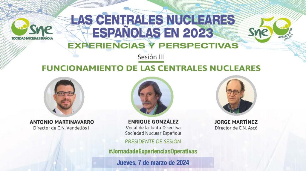 La Sociedad Nuclear Española organiza, un año más, la XXXV Jornada “LAS CENTRALES NUCLEARES EN 2023. EXPERIENCIAS Y PERSPECTIVAS”, en la que los directores de las centrales nucleares españolas tratarán aspectos relevantes de su operación durante el pasado ejercicio.